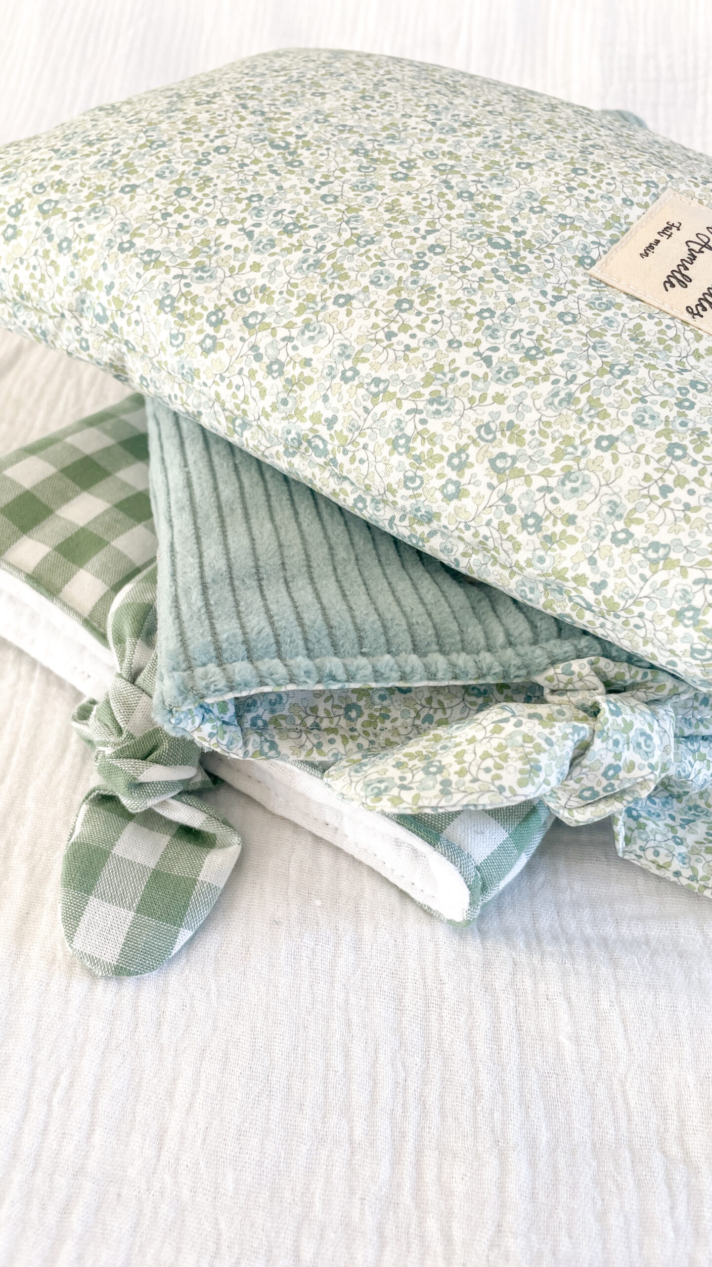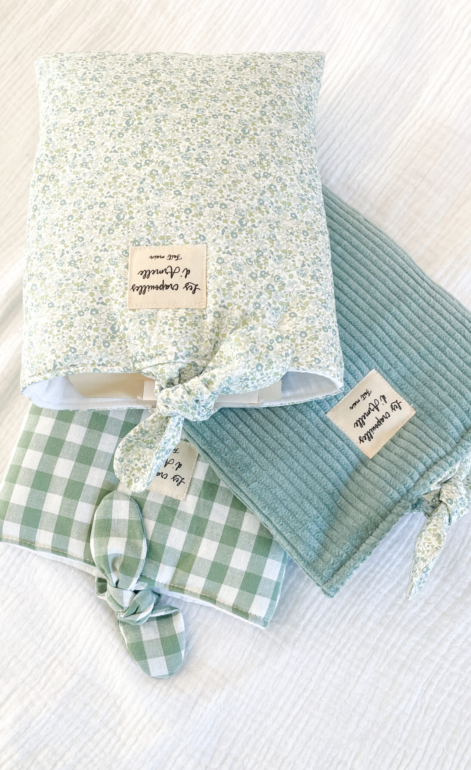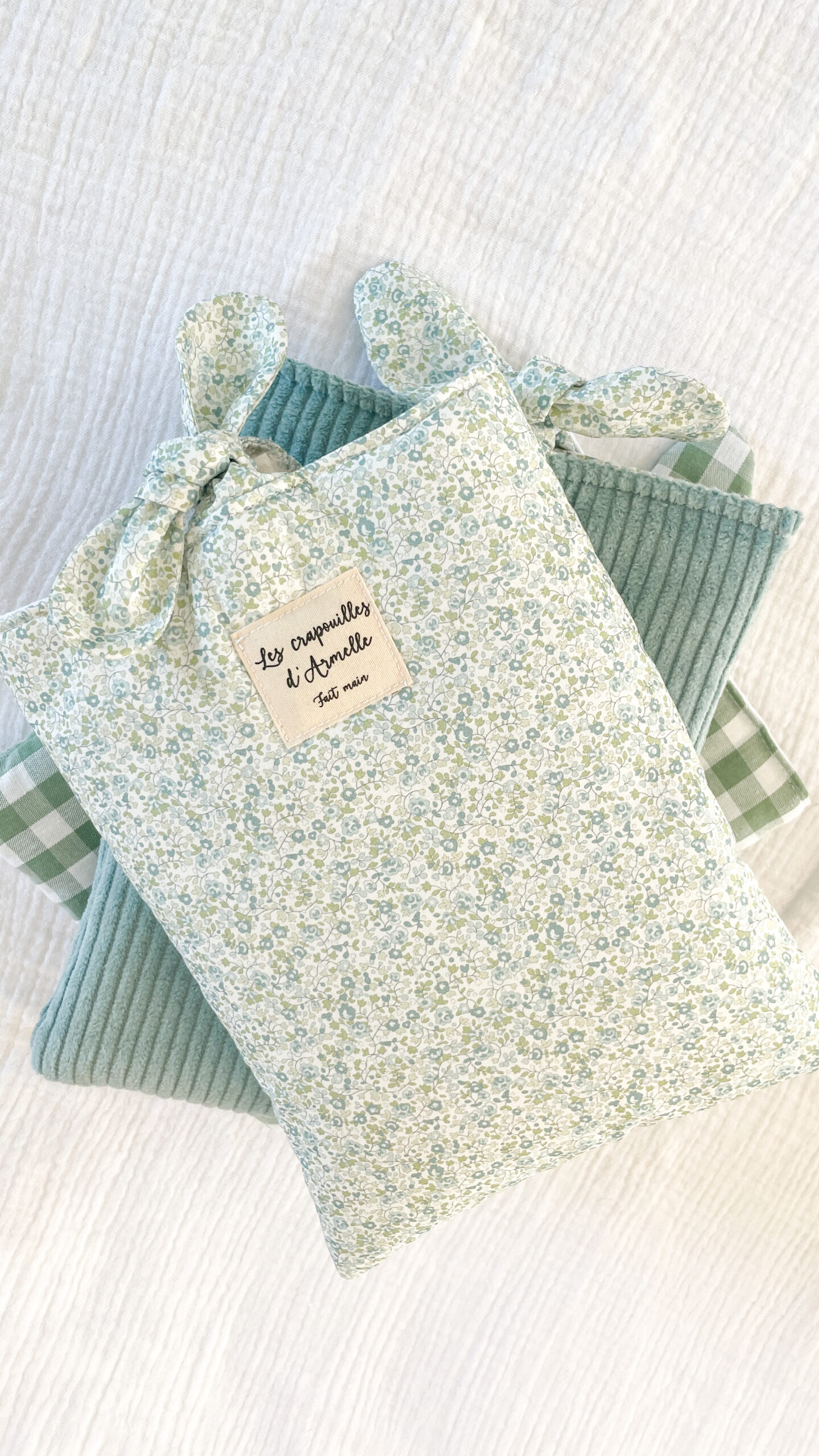 Pochette à livre fleurie vert clair
