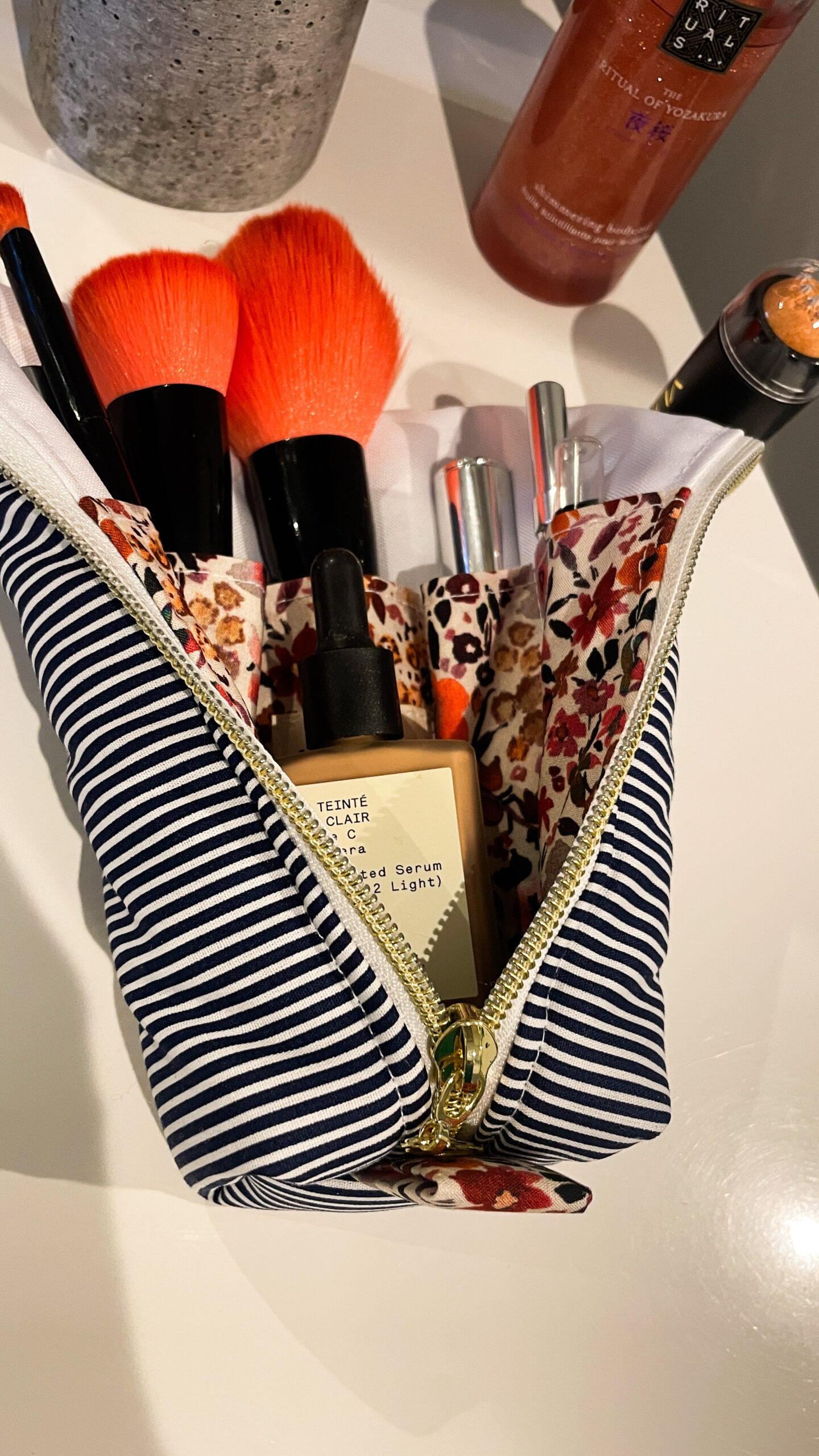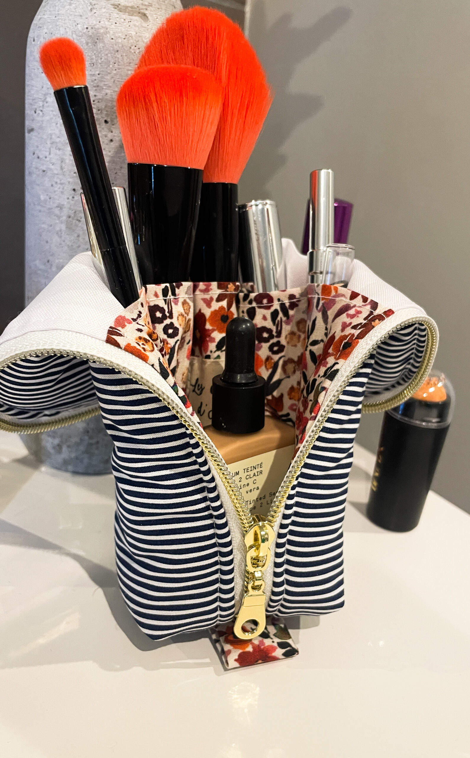 Trousse à pinceaux de maquillage marinière fleurie